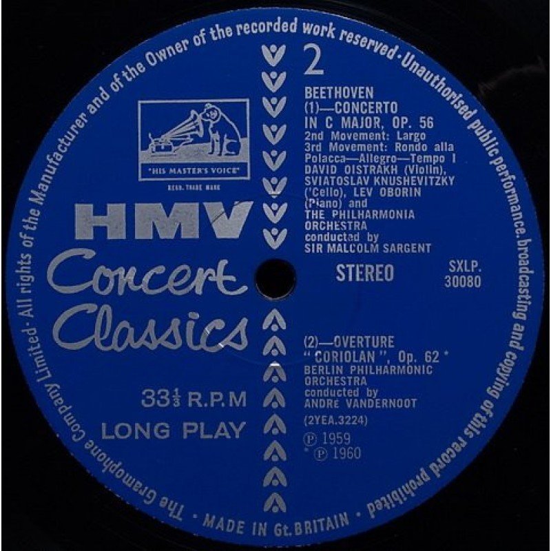Track List | A1 Overture "Egmont", Op. 64 Triple Concerto In C Major, Op. 56 B3 Overture "Coriolan", Op. 62 |