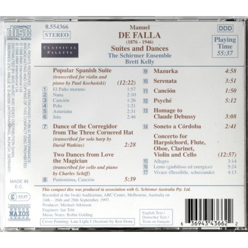 De Falla* - The Schirmer Ensemble, Brett Kelly - Popular Spanish Suite /Three Pieces Piano / Psyché / Concerto For Harpsichord (CD)