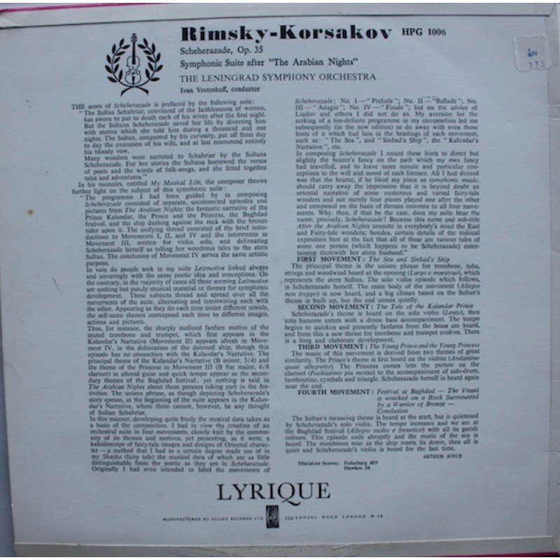 Rimsky-Korsakov*, The Leningrad Symphony Orchestra*, Ivan Vrotoshoff - Scheherazade Symphonic Suite, Op. 35 (LP, Album)