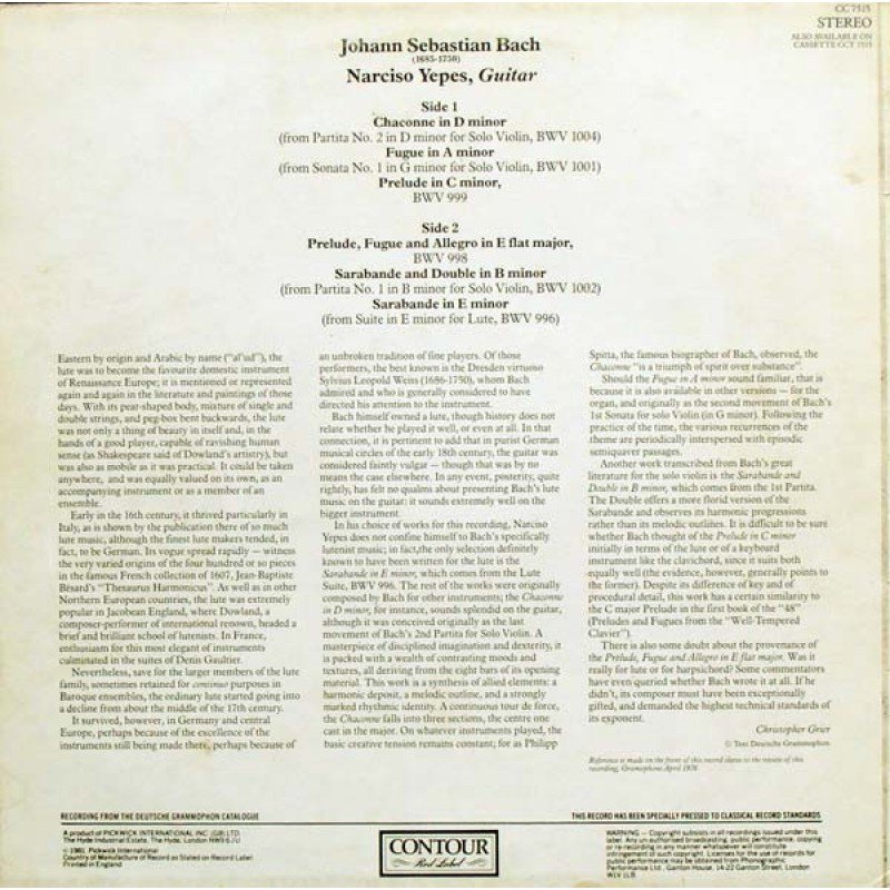 Track List | A1 Chaconne In D Minor (From Partita No 2 In D Minor For Solo Violin, BWV 1004) A2 Fugue In A Minor (From Sonata No 1 In G Minor For Solo Violin, BWV 1001) A3 Prelude In C Minor (BWV 999) B1 Prelude, Fugue & Allegro In E Flat Major (BWV 998) B2 Sarabande & Double In B Minor (From Partita No 1 In B M |