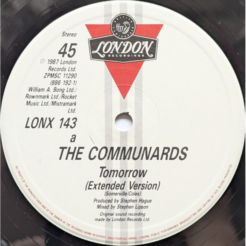 'Tomorrow' taken from the forthcoming LP/CD/Cassette [url=http://www.discogs.com/Communards-Red/master/49635]'Red'[/url].Side A recorded at Advision, London.