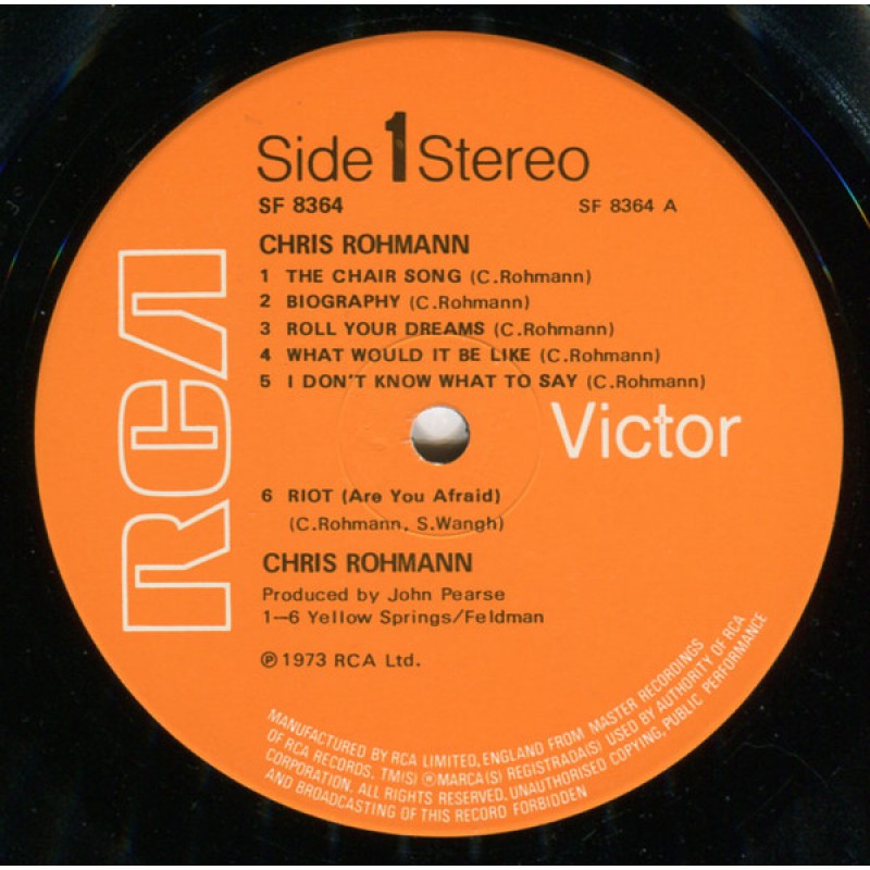 | Track List | A1 The Chair Song A2 Biography A3 Roll Your Dreams On A4 What Would It Be Like A5 I Don't Know What To Say A6 Riot (Are You Afraid) B1 The Man I Am Today B2 The Lion And The Deer B3 I Must Fly B4 Song Of The Farmer B5 Sing B6 Happy Birthday |