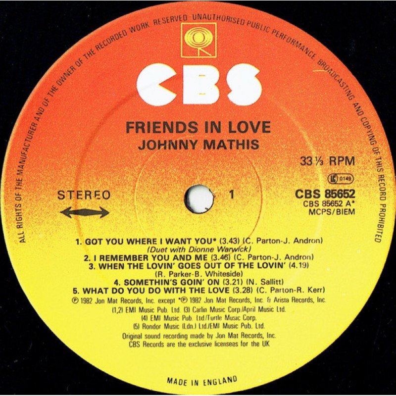 | Track List | A1 Got You Where I Want You A2 I Remember You And Me A3 When The Lovin' Goes Out Of The Lovin' A4 Somethin's Goin' On A5 What Do You Do With The Love B1 Friends In Love B2 What's Forever For B3 Warm B4 Memory (Theme From Cats) B5 Lately |