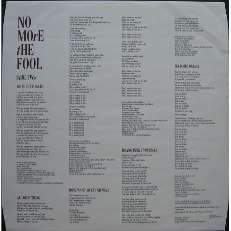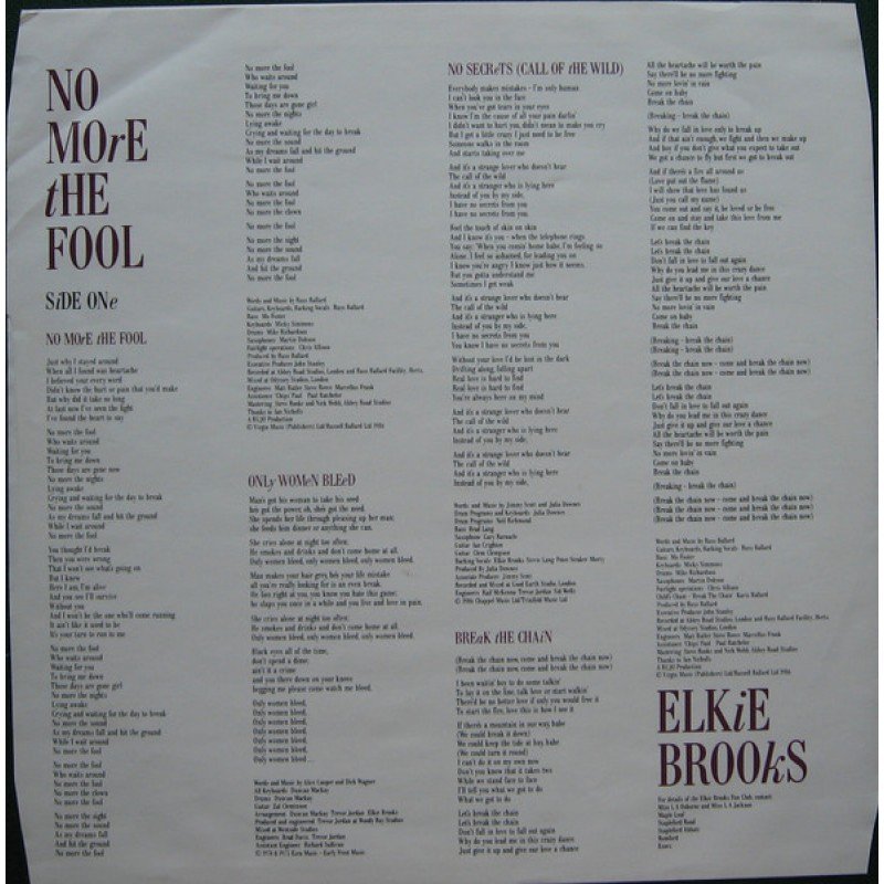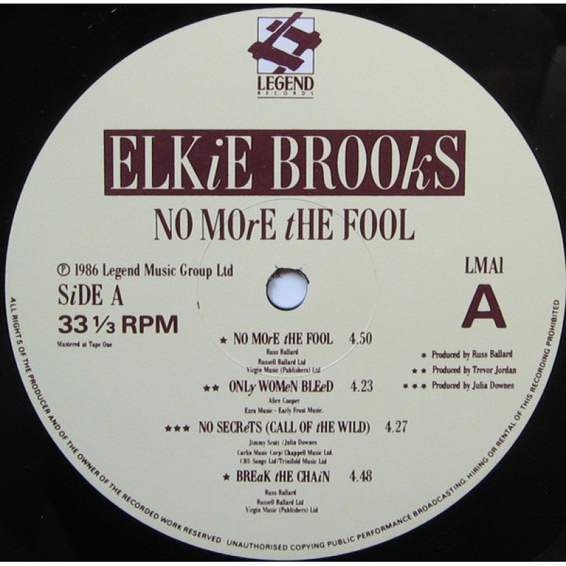 No More The Fool recorded at Abbey Road Studios, London and Russ Ballard Facility, Herts. Mixed at Odyssey Studios, London. Mastered at Abbey Road Studios. A RUJO Production. © Virgin Music (Publishers) Ltd/Russell Ballard Ltd 1986Only Women Bleed produced and engineered at Woody Bay Studios. Mixed at Westside Studios. © 1974 & 1975 Ezra Music - Early Frost Music.