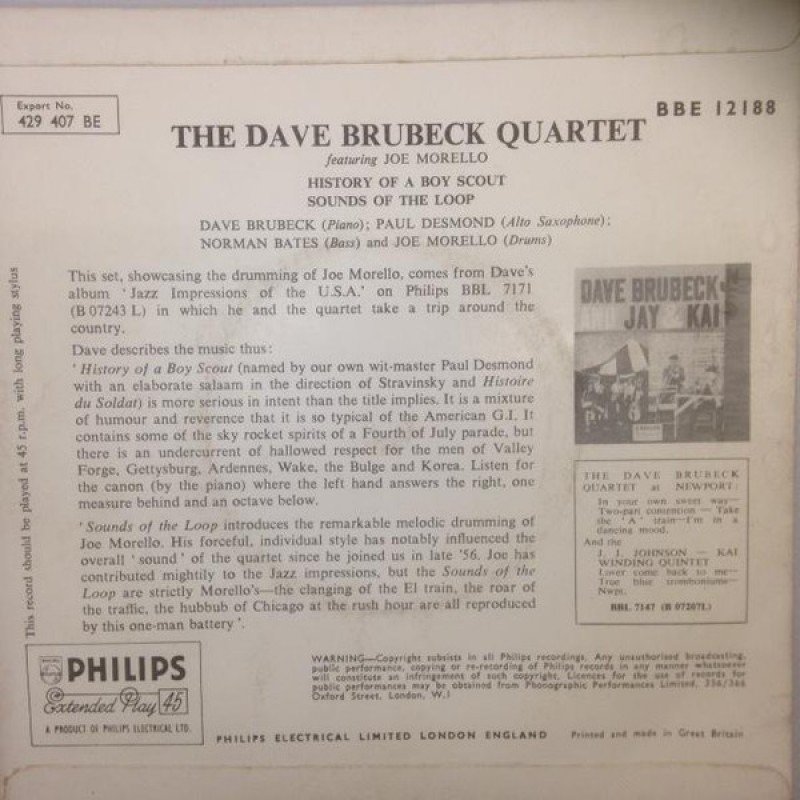 The Dave Brubeck Quartet Featuring Joe Morello - History Of A Boy Scout (7", EP, Sol)