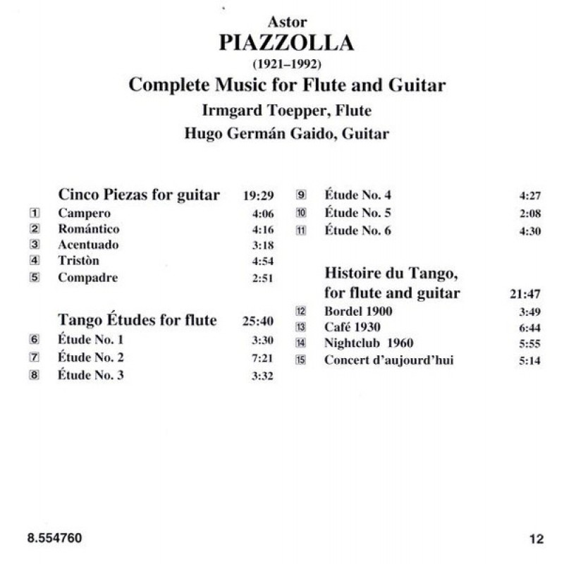 Piazzolla* - Irmgard Toepper, Hugo Germán Gaido - Complete Music For Flute And Guitar (CD)