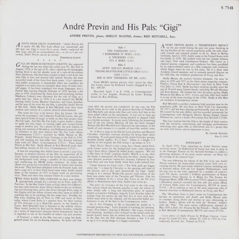 André Previn & His Pals - Modern Jazz Performances Of Songs From Gigi (LP, Album, RP)