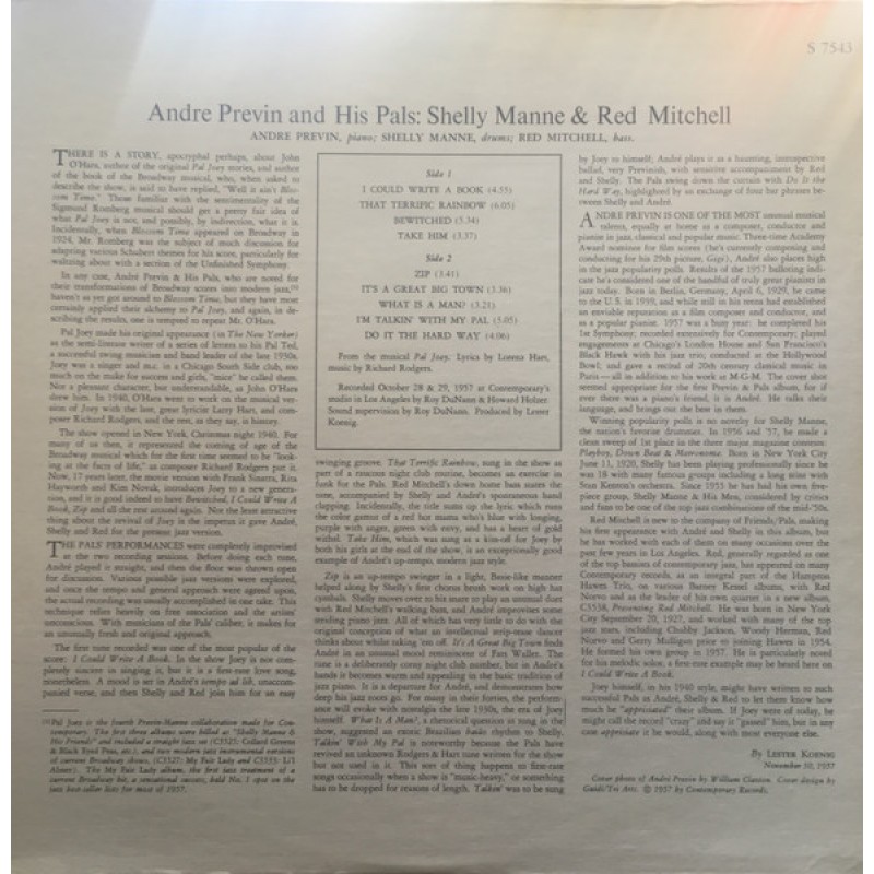 André Previn & His Pals - Modern Jazz Performances Of Songs From Pal Joey (LP, Album, RE)