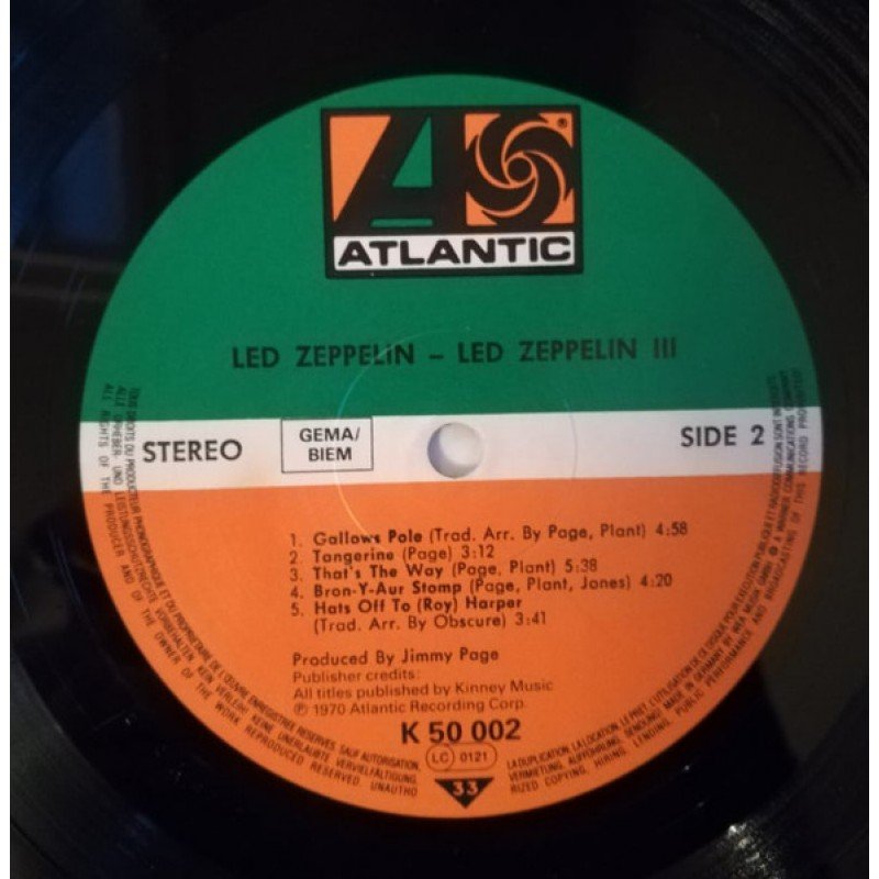 | Track List | A1 Immigrant Song A2 Friends A3 Celebration Day A4 Since I've Been Loving You A5 Out On The Tiles B1 Gallows Pole B2 Tangerine B3 That's The Way B4 Bron-Yr-Aur Stomp B5 Hats Off To (Roy) Harper |