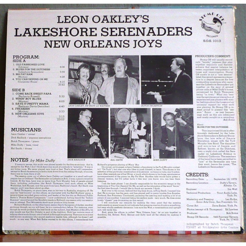 Leon Oakley's Lakeshore Serenaders - New Orleans Joys (LP, Album)