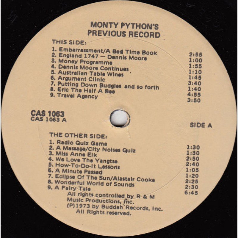 Track List | A1 Embarrassment / A Bed Time Book A2 England 1747 - Dennis Moore A3 Money Programme A4 Dennis Moore Continues A5 Australian Table Wines A6 Argument Clinic A7 Putting Down Budgies And So Forth A8 Eric The Half A Bee A9 Travel Agency B1 Radio Quiz Game B2 A Massage / Cit |
