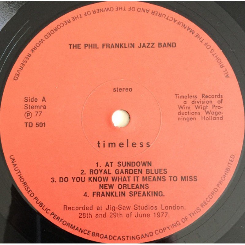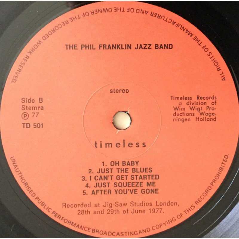 | Track List | A1 At Garden Blues A2 Do You Know What It Means To Miss New Orleans A3 Franklin Speaking B1 Oh! Baby B2 Just The Blues B3 I Can't Get Started B4 Just Squeeze Me B5 After You've Gone |