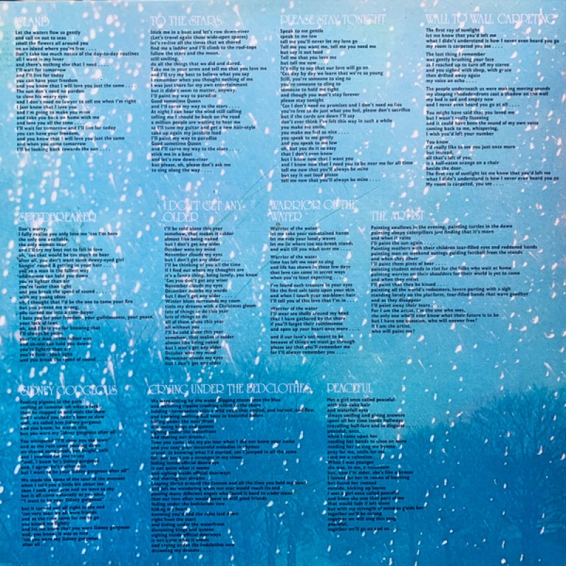| Track List | A1 Island A2 To The Stars A3 Stay Tonight A4 Wall To Wall Carpeting A5 Speedbreaker A6 I Don't Get Any Older B1 Warrior Of The Water B2 The Artist B3 Baby What's Wrong (With You) B4 Sidney Gorgeous B5 Crying Under The Bedclothes B6 Peaceful |