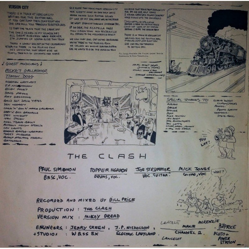 This version has slightly different song writing and publishing credits from [r=100245]. Track A3 "Junco Partner" is credited to "Unknown" and published by Copyright Control instead of James Booker and War Lock Music. Track F4 ”Version Pardner" is credited to "Unknown" and published by Copyright Control instead of Clash and War Lock Music. Track is also spelled as "Version Pardner" on the label rather than "Version Partner.Another very similar edition with the same song writing and publishing credits, [r=12925861] also credits [a=Tim Young] (timtom) for the lacquer job in its runouts, which isn't present here.