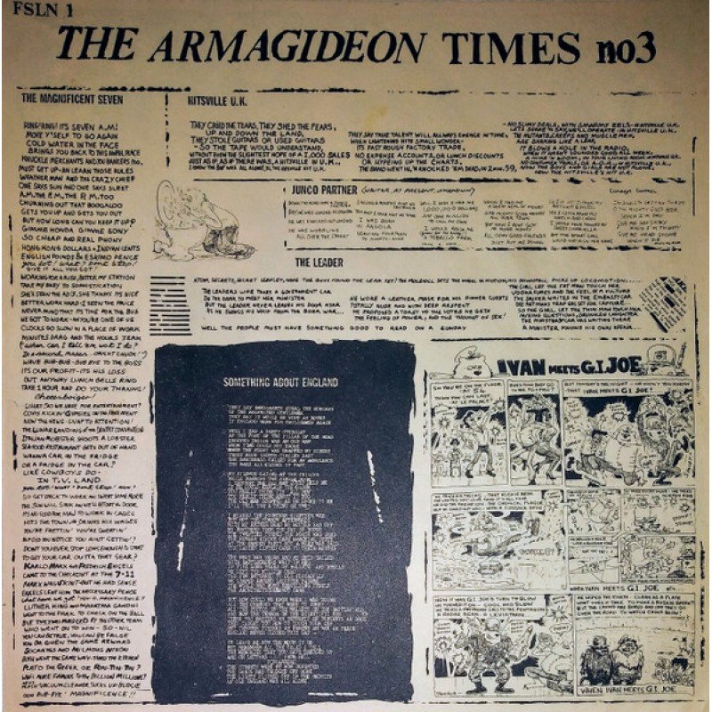 Includes fold out insert "The Armagideon Times no3" with lyrics and illustrations.
