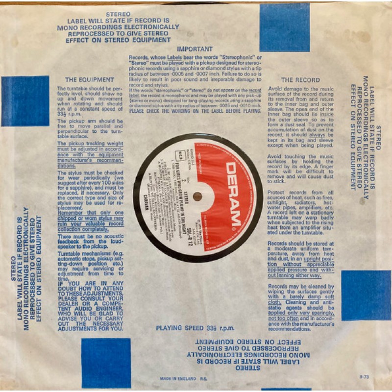 Original UK release with outside laminated gatefold sleeve & polylined Decca company inner sleeve dated 9-73.