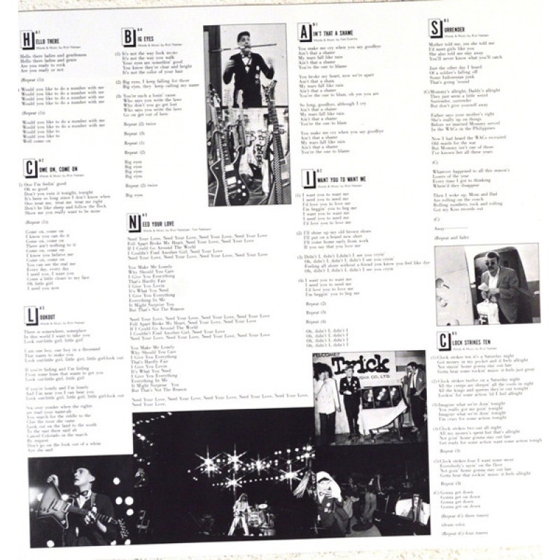 | Track List | A1 Hello There A2 Come On Come On A3 Look Out A4 Big Eyes A5 Need Your Love B1 Ain't That A Shame B2 I Want You To Want Me B3 Surrender B4 Goodnight Now B5 Clock Strikes Ten |