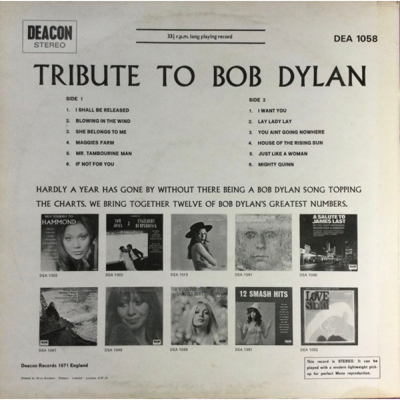 Dave Travis (2) - Tribute To Bob Dylan (LP, Album)