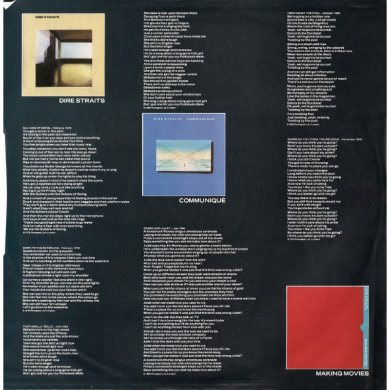 | Track List | A1 Sultans Of Swing A2 Down To The Waterline A3 Portobello Belle - Live A4 Twisting By The Pool (Remix) A5 Romeo And Juliet A6 Where Do You Think You're Going B1 Walk Of Life B2 Private Investigations B3 Money For Nothing B4 Tunnel Of Love B5 Brothers In Arms |
