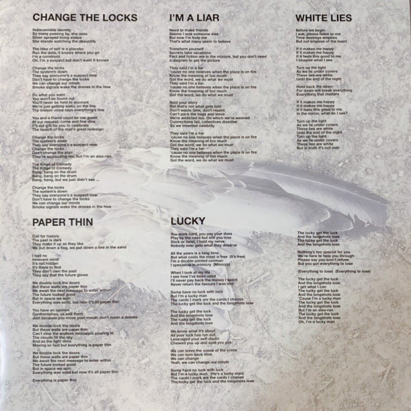| Track List | A1 Toreador A2 Alpha Male A3 One True Friend A4 Ivanka: 'My Name's On It' A5 Don't Ask Me B1 Change The Locks B2 I'm A Liar B3 White Lies B4 Paper Thin B5 Lucky |