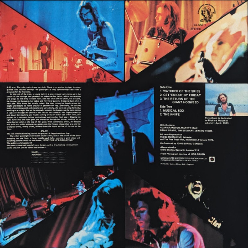 | Track List | A1 Watcher Of The Skies A2 Get 'Em Out By Friday A3 The Return Of The Giant Hogweed B1 Musical Box B2 The Knife |