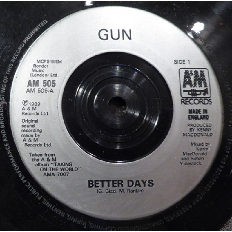 "Better Days" taken from the A&M album [url=https://www.discogs.com/Gun-Taking-On-The-World/master/141885]"Taking On The World"[/url] AMA 7007.Made in England.