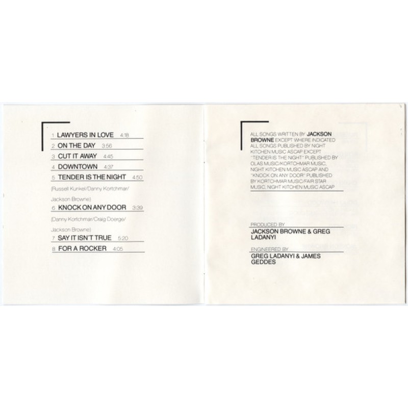 Sleeve:All songs published by Night Kitchen Music ASCAP expcept "Tender Is The Night" published by Olas Music/Kortchmar Music, Night Kitchen Music ASCAP and "Knock On Any Door" published by Kortchmar Music/Fair Star Music, Night Kitchen Music ASCAP.