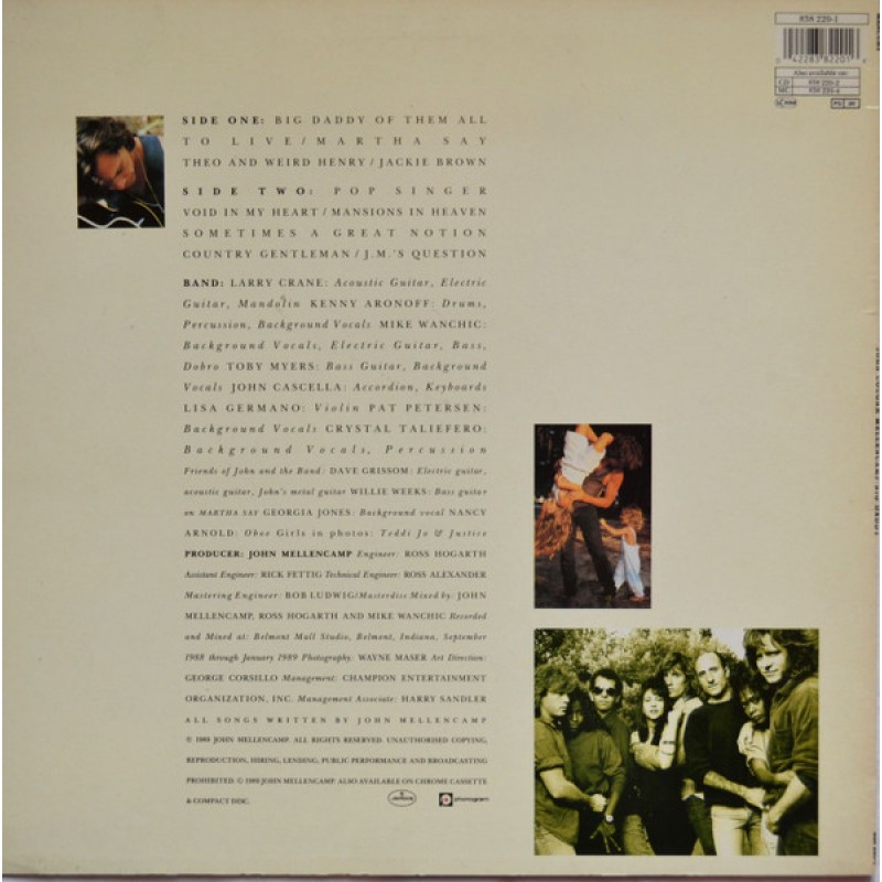 [Back cover]℗ 1989 John Mellencamp
