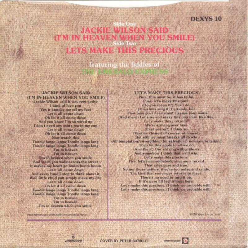 Kevin Rowland & Dexys Midnight Runners - Jackie Wilson Said (I'm In Heaven When You Smile) / Lets Make This Precious (7