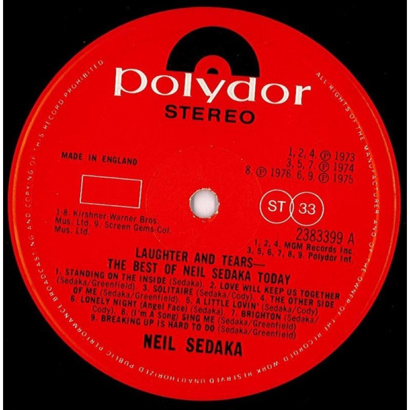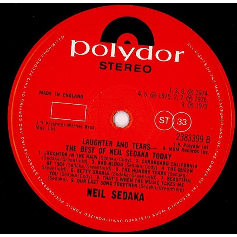 Title on labels: Laughter And Tears - The Best Of Neil Sedaka Today