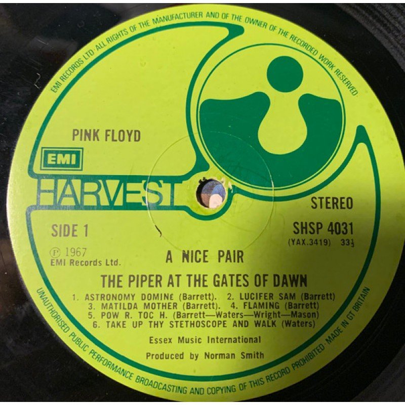 | Track List | The Piper At The Gates Of Dawn A1 Astronomy Domine A2 Lucifer Sam A3 Matilda Mother A4 Flaming A5 Pow R. Toc. H. A6 Take Up Thy Stethoscope And Walk B1 Interstellar Overdrive B2 The Gnome B3 Chapter 24 B4 Scarecrow B5 Bike A Saucerful Of Secrets C1 Let |