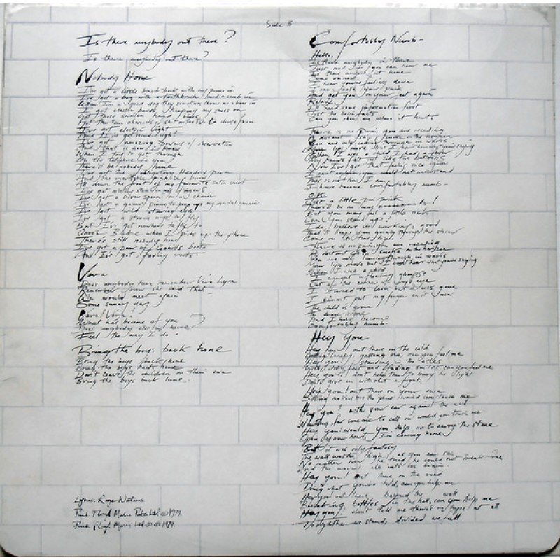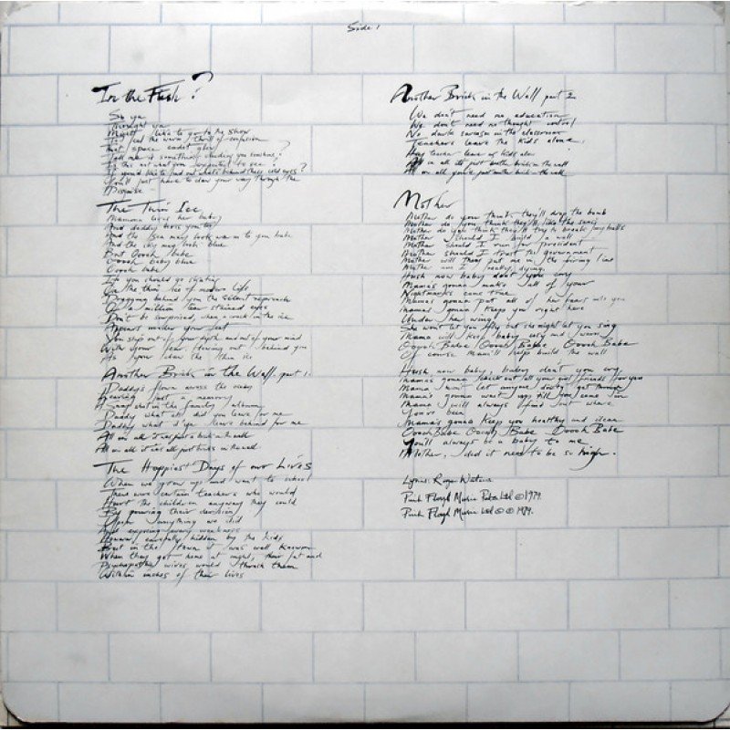 Inner sleeves also feature the "Wall" design with lyrics (graphics by Gerald Scarfe).