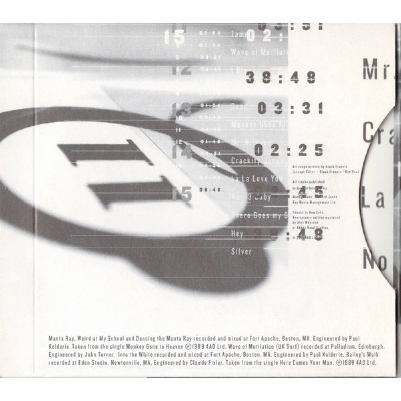 | Track List | Original Album 1-1 Debaser 1-2 Tame 1-3 Wave Of Mutilation 1-4 I Bleed 1-5 Here Comes Your Man 1-6 Dead 1-7 Monkey Gone To Heaven 1-8 Mr. Grieves 1-9 Crackity Jones 1-10 La La Love You 1-11 No. 13 Baby 1-12 There Goes My Gun 1-13 Hey 1-14 Silver |