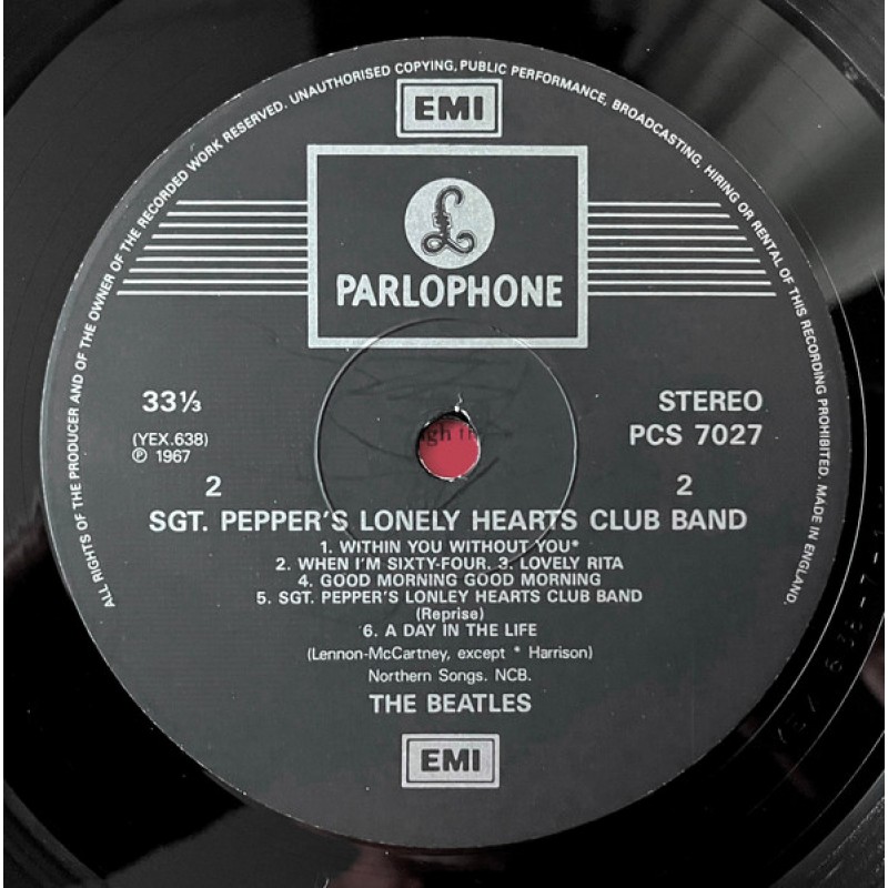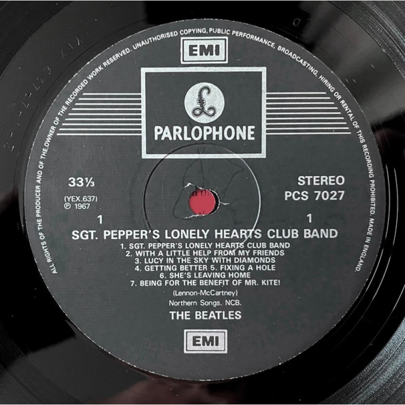 | Track List | A1 Sgt. Pepper's Lonely Hearts Club Band A2 With A Little Help From My Friends A3 Lucy In The Sky With Diamonds A4 Getting Better A5 Fixing A Hole A6 She's Leaving Home A7 Being For The Benefit Of Mr. Kite! B1 Within You Without You B2 When I'm Sixty-Four B3 Lovely Rita |