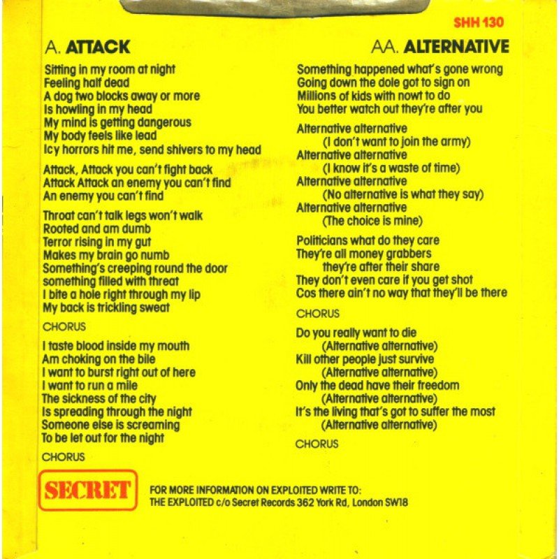 ℗ 1982 Secret RecordsThis version has the correct Side AA label