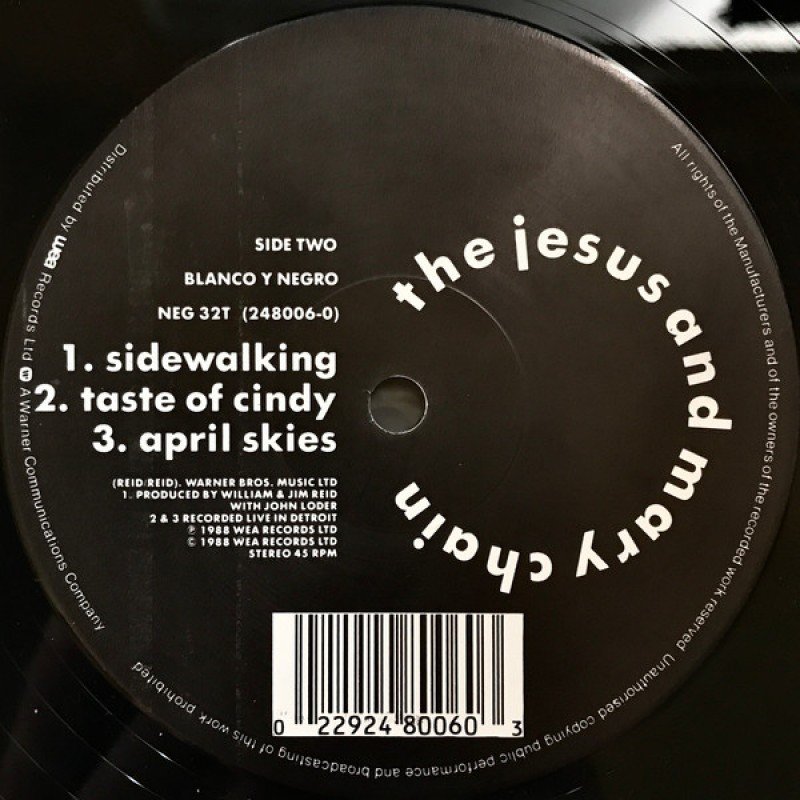 Track List | A Sidewalking (Extended Version) B1 Sidewalking (7" Mix) B2 Taste Of Cindy (Recorded Live In Detroit) B3 April Skies (Recorded Live In Detroit) |