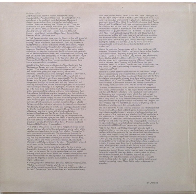 As mentioned above, this LP is a two-disc Blue Note set that includes the complete tracks from "The Return of Art Pepper" and "Modern Art," plus five tracks from his January 1956 appearance on Joe Morello's (ds) album.