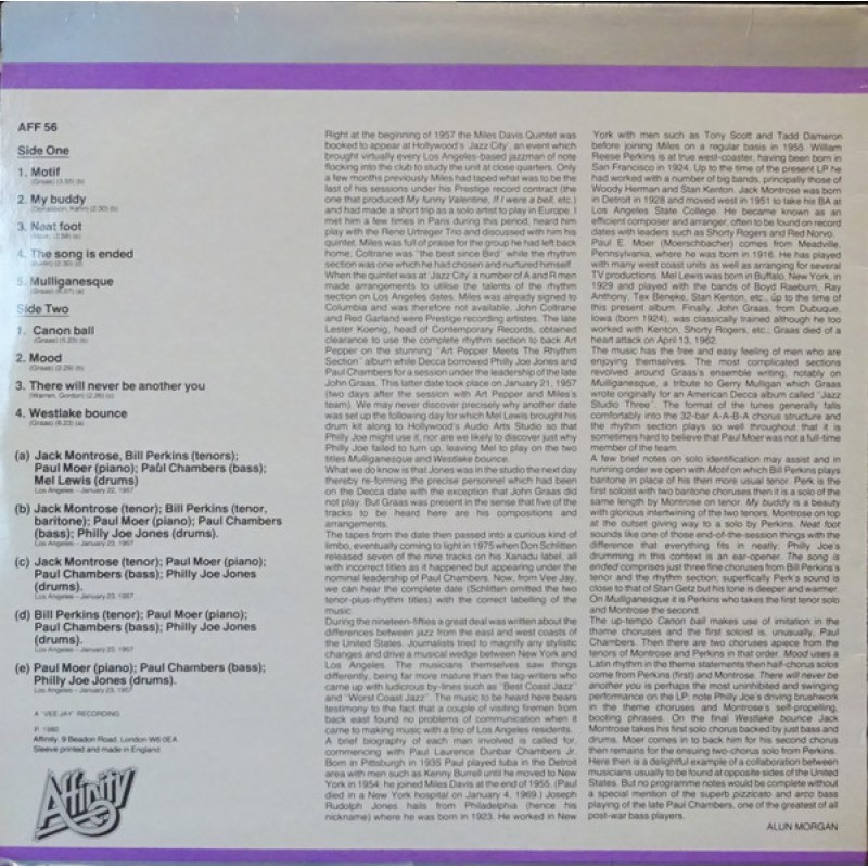 | Track List | A1 Motif A2 My Buddy A3 Neat Foot A4 The Song Is Ended A5 Mulliganesque B1 Cannon Ball B2 Mood B3 There Will Never Be Another You B4 Westlake Bounce |