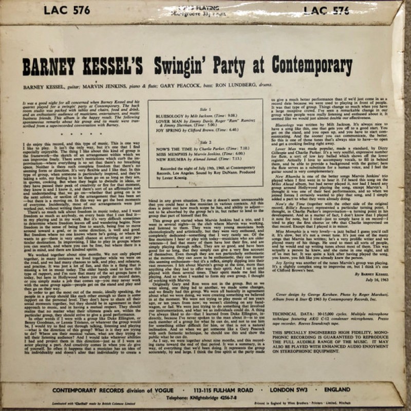 Barney Kessel - Barney Kessel's Swingin' Party At Contemporary (LP, Album, Mono)