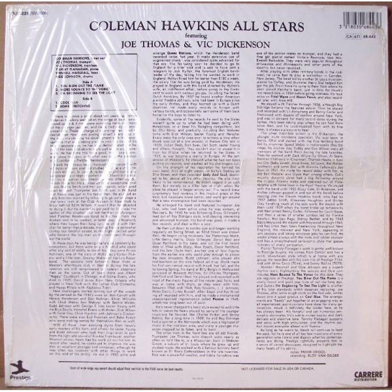 Coleman Hawkins All Stars Featuring Joe Thomas (4), Vic Dickenson - Coleman Hawkins All Stars (LP, Album, RE)
