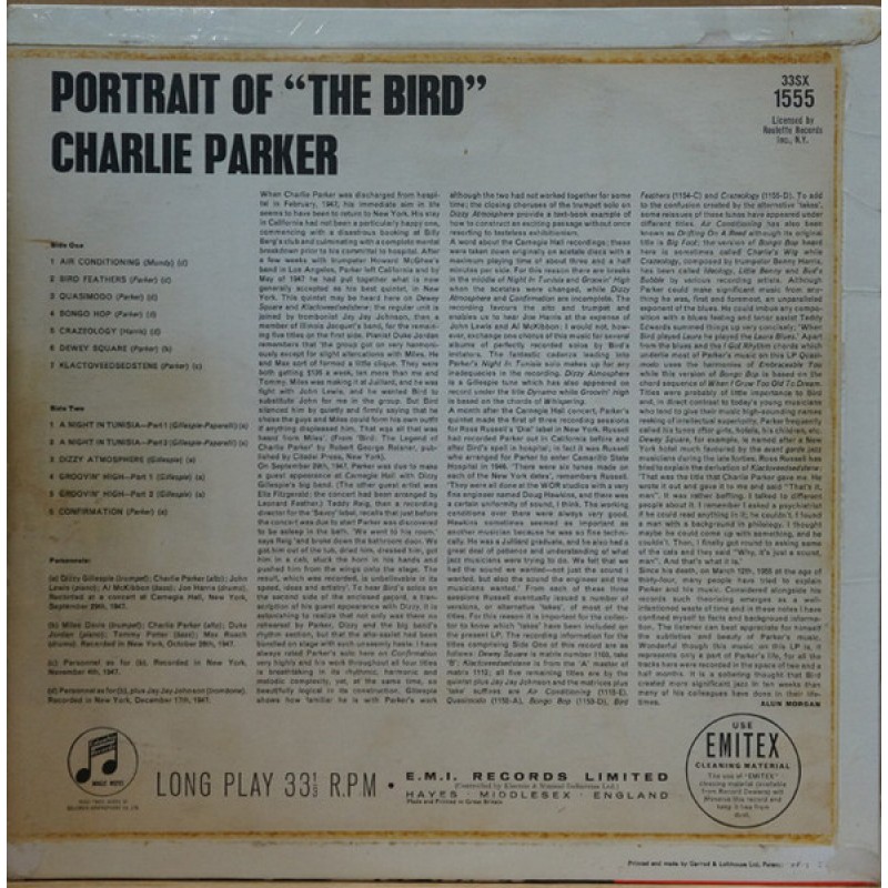| Track List | A1 Air Conditioning A2 Bird Feathers A3 Quasimodo A4 Bongo Hop A5 Crazeology A6 Dewey Square A7 Klactoveedsedstene B1 A Night In Tunisia - Part 1 B2 A Night In Tunisia - Part 2 B3 Dizzy Atmosphere B4 Groovin High - Part 1 B5 Groovin High - Part 2 B6 Confirmati |