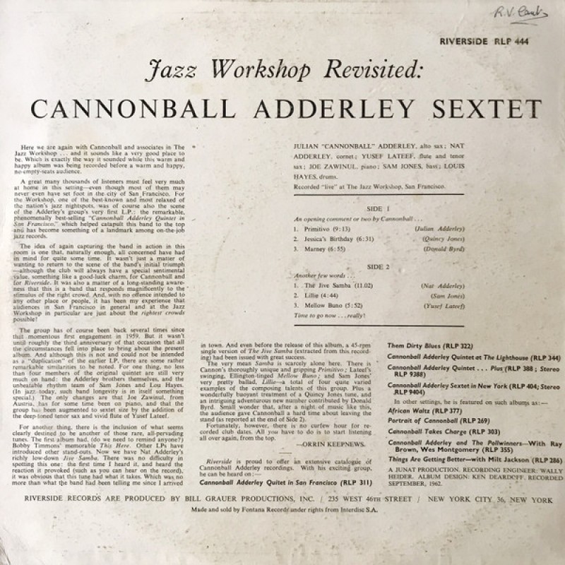 Cannonball Adderley Sextet - Jazz Workshop Revisited (LP, Album, Mono)