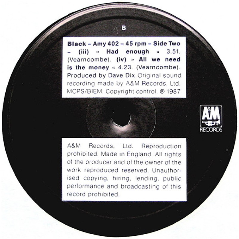 "All We Need Is The Money" was later re-recorded for Black's second album [url=http://www.discogs.com/release/795786]"Comedy"[/url].